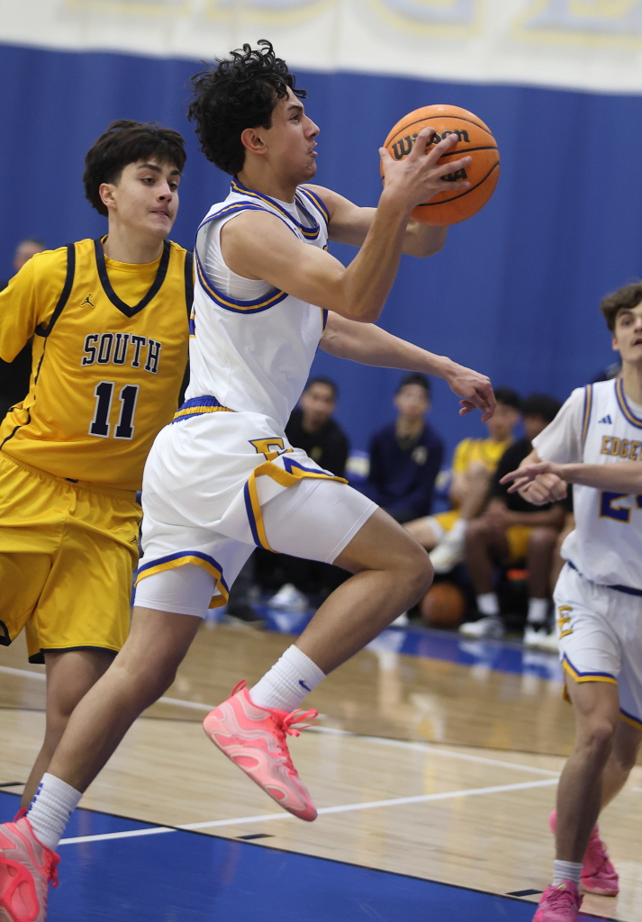 the two teams played it even in the third quarter. Edgewood went up 32-25 as Mateo Ronquillo scored seven points for the Lions to lead the charge. Isaac McKey also had six in the quarter. But South El Monte battled back to get within two, 34-33, when the quarter ended. Lopez had six in the third for the Eagles.