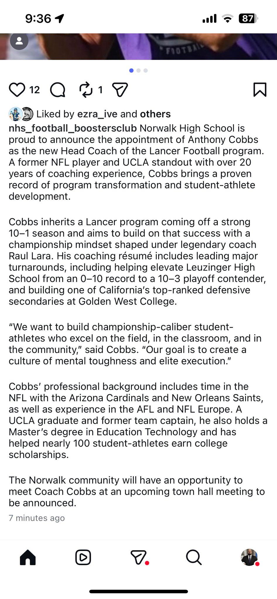(Norwalk) – Norwalk has named Anthony Cobbs as its new head football coach the school announced Wednesday. Cobbs is a former UCLA player and has over 20 years of coaching experience.