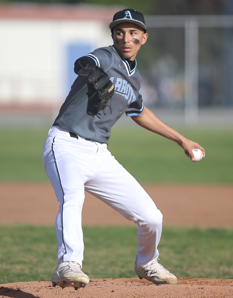 The Aztecs then put the game away in the fourth. Adrian Pena beat out an infield hit and Anthony Quezada and Jeran Ofalla walked to load the bases. Rafael Molina was hit by a pitch to force in a run, Quezada scored on a passed ball and Ofalla came home on a wild pitch. Later in the inning after a couple more walks Justin Casas drilled a two-run single. After another hit batter, Pena, who led off the inning with an infield hit, laced a single to drive in two more. By the time the dust had settled Arroyo had used three pitchers in the inning and Azusa had batted around and was up 11-0,
