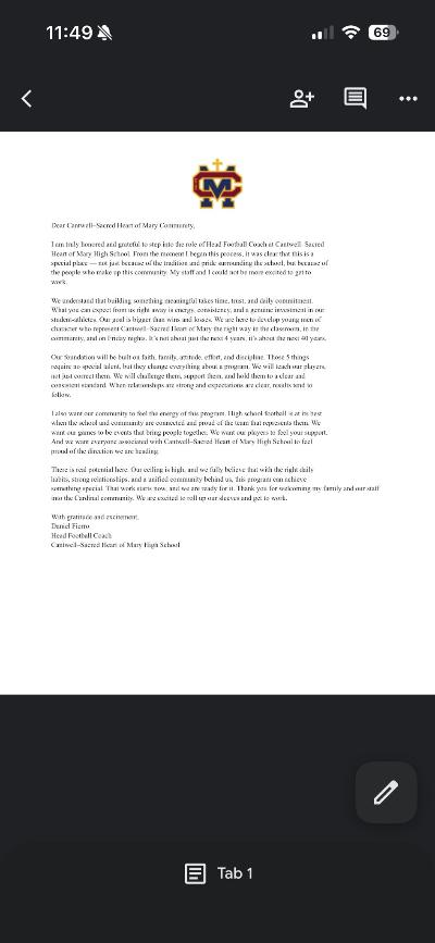 (Montebello) – Daniel Fierro has been named the new head football coach at Cantwell Sacred Heart the school announced Wednesday.