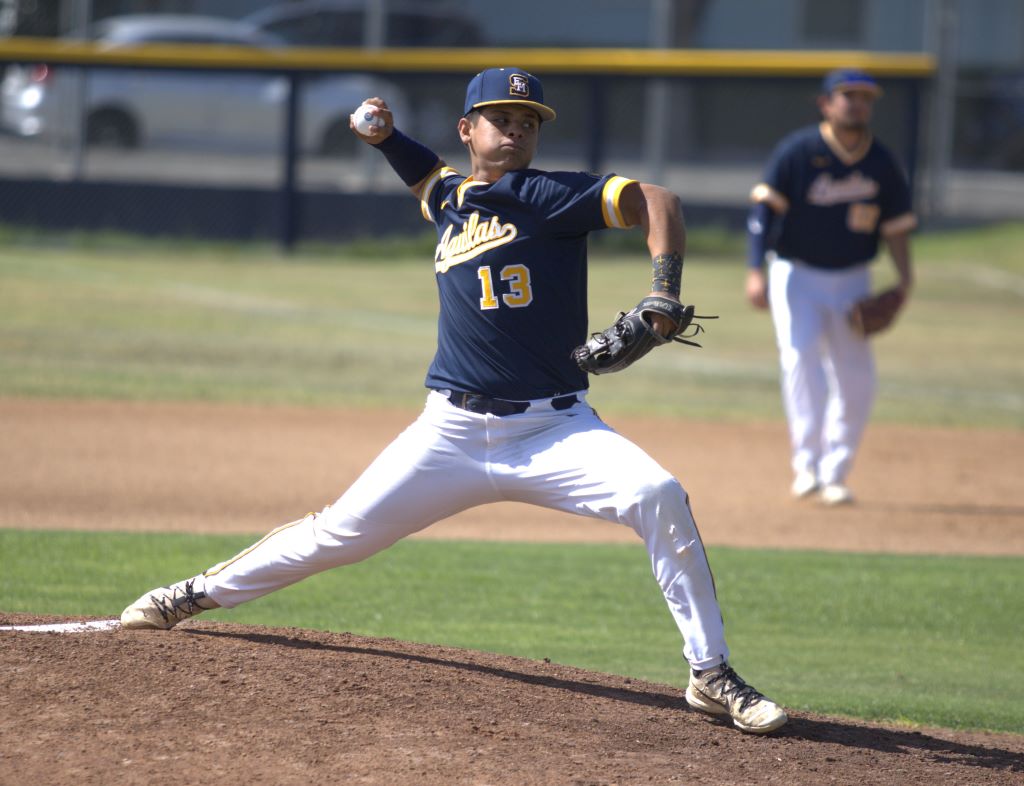 (South El Monte) – Elijah Benavidez threw six and two-thirds scoreless innings to lead South El Monte to a 6-0 win over Mt. View Monday on the Eagles home field. With the victory the Eagles are in sole possession of first place in the Mission Valley League.